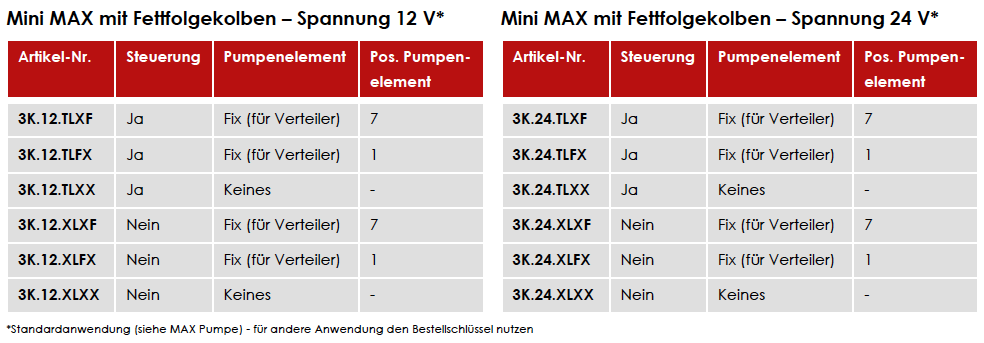 • Version mit Fettfolgekolben: elektrische Mindestfüllstandsanzeige ist vorgesehen