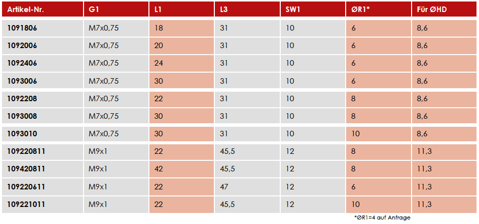 Zur Montage diverser Hochdruckschläuche Abmessungen der zusammenpassenden Leitungen, Schraubhülsen, Rohrstutzen siehe ØHD (auf gleichen Durchmesser/G1 achten!)