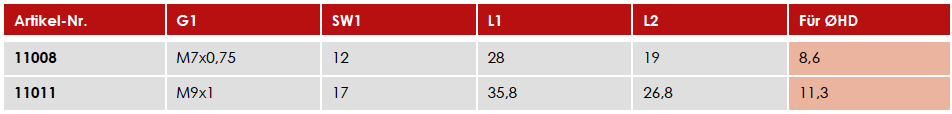 Schraubhülsen für HD Leitung mit Ø4 mm sind auf Anfrage erhältlich.