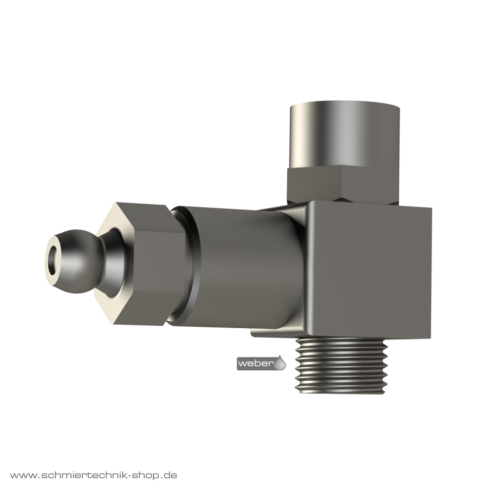 Winkelschwenkverschraubungen mit Schmiernippel werden am Einlass oder am Auslass des Progressivverteilers eingebaut, um im Falle eines Ausfalls der Hauptpumpe eine Handpumpe oder eine pneumatische Pumpe verwenden zu können.