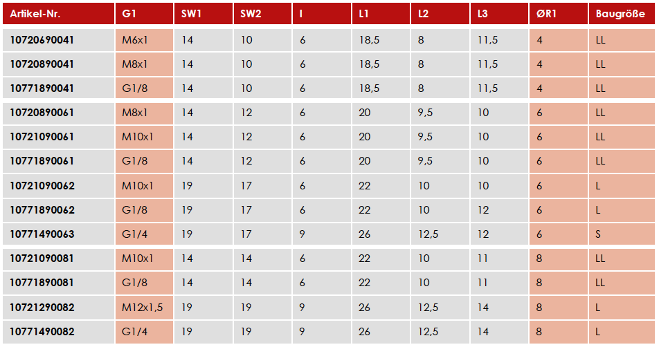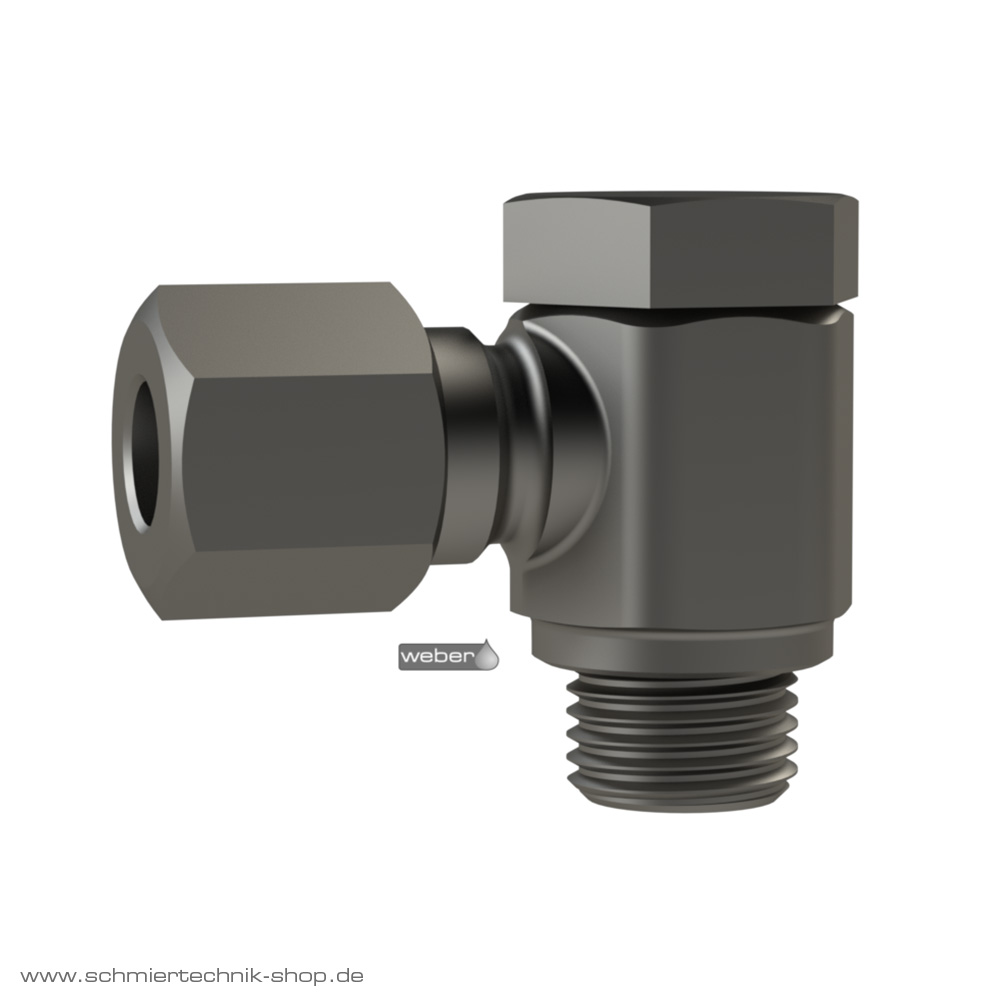 Auf Anfrage sind einige Winkelschwenkverschraubungen auch mit Schmiernippel erhältlich (z. B. M10x1 für Verteiler DPX).